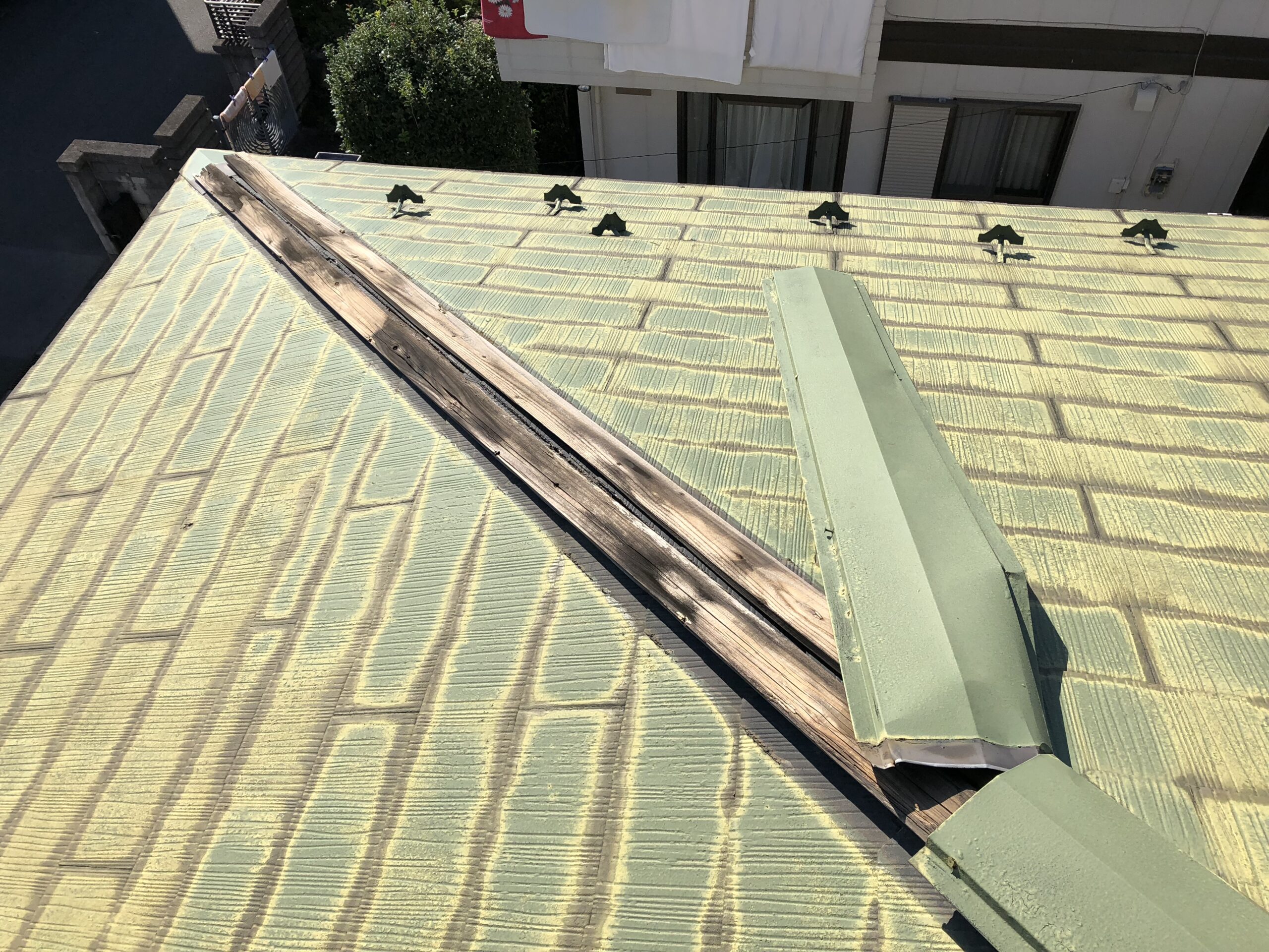 - 棟板金・谷板金:釘の浮き、錆、腐食、固定力の低下