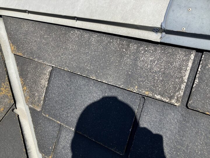 スレートの素地が露出してしまっている箇所が部分的にございます。素地が露出している箇所は防水性能がゼロの状態となります。
