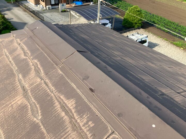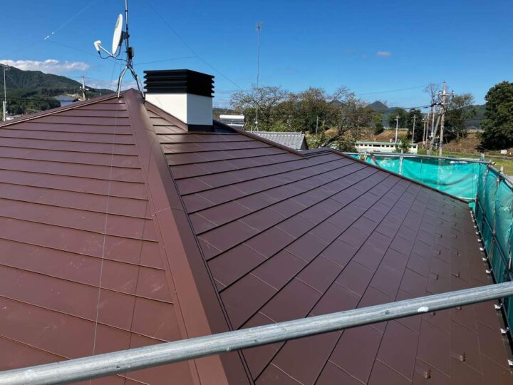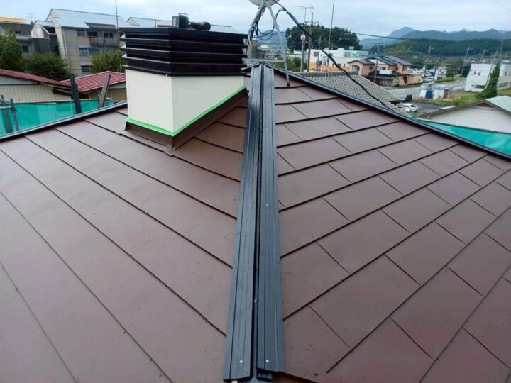 栃木県宇都宮市 M様邸 栃木県さくら市 M様邸 屋根カバー工法『INAGAKI ICひらぶき ヒランビー220』・ベランダ防水工事 2025.11.28 施工データ 工事内容 屋根カバー工法防水工事雨樋交換 屋根材 稲垣商事㈱ ICひらぶき ヒランビー220 施工カラー セピアブラウン系 使用材料 屋根材:INAGAKI ICひらぶきヒランビー220 カラー:セピア 外壁塗装施工事例の詳細はコチラ ご相談・診断・お見積りは完全無料! 0120-918-519【完全無料】受付時間:9:00~17:30 この施工事例と類似の条件で見積を依頼する ビフォー&アフター 建物診断の結果 既存屋根材はスレート屋根です。石質の薄い板を使用しているため、劣化や反りがしやすい材料です。 紫外線による劣化がひどく褪色が見られ、クラック(ひび割れ)が見受けられます。 雨押え状況です。褪色が見受けられます。 谷の褪色が見受けられます。今回、屋根と併せて塗装することを推奨します。 経年変化の影響による笠木部分の釘の抜けや浮きは見受けられませんでした。釘頭部分はシーリングで補修し、塗装をする必要があります。 既存バルコニーは塩ビシートです。劣化が著しく進行しているため塗装工事が難しく、バルコニーに関してやりかえを推奨いたします。 施工中の写真 足場の組立・メッシュシートの取付が完了しました。安全且つご近所様への配慮になります。 屋根の洗浄作業を行っています。 付帯部洗浄を行っています。 ルーフィング貼りを行っています。 軒先・ケラバ取付を行っています。 本体葺きを行っています。 棟板金の取付を行っています。 棟板金の取付を行っています。 棟板金の取付を行っています。 完成しました。 完成しました。 完成しました。 施工後の写真 私が担当しました! 営業部 東谷町本店 たかはし まどか髙橋 円