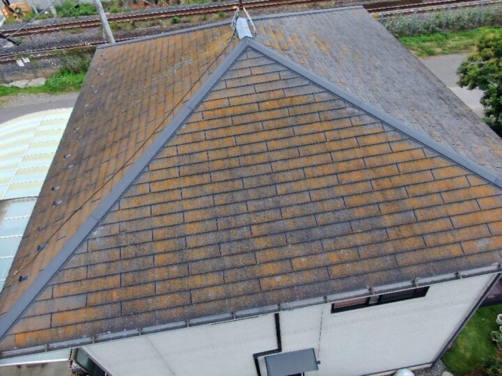 • 既存屋根材はスレート屋根です。石質の薄い板を使用しているため、劣化や反りがしやすい材料です。