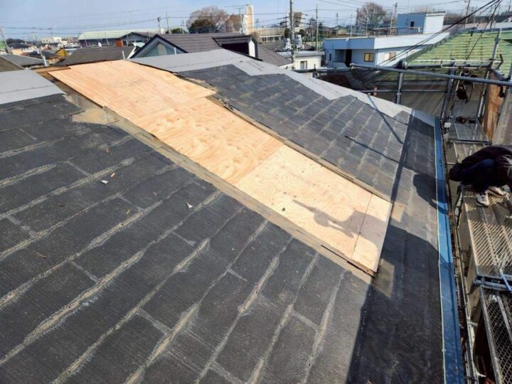 栃木県宇都宮市 S様邸 屋根カバー工法『ニチハ 横暖ルーフαs』 2026.02.25 施工データ 工事内容 雨樋交換屋根カバー工法破風板金 施工カラー ブルー系 使用材料 屋根材:ニチハ 横暖ルーフαs カラー:ミッドナイトブルー ご相談・診断・お見積りは完全無料! 0120-918-519【完全無料】受付時間:9:00~17:30 この施工事例と類似の条件で見積を依頼する ビフォー&アフター 建物診断の結果 施工中の写真 足場の組立・メッシュシートの取付が完了しました。安全且つご近所様への配慮になります。 ドーマー解体を行います。 解体作業を行っています。 ドーマー解体部下地 軒先唐草取り付け 棟取り付け 本体葺きを行っています。 棟取り付け 施工後の写真 私が担当しました! 常務取締役 すどう たかゆき須藤 崇行