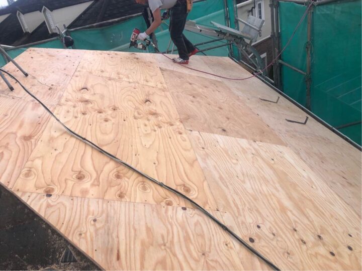 • 野地板貼りを行っています。
