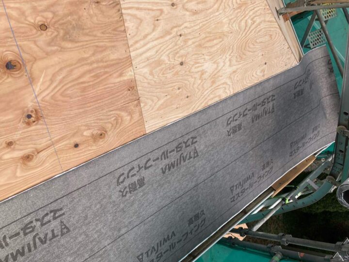 • ルーフィング貼りを行っています。