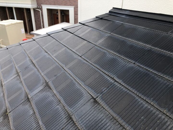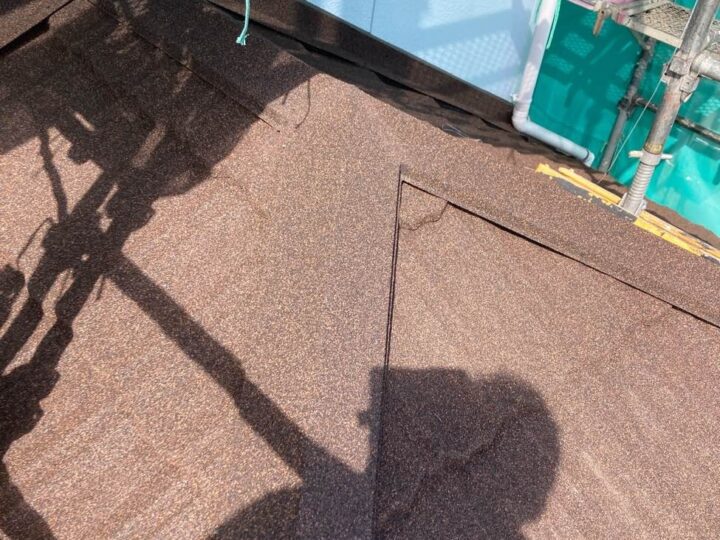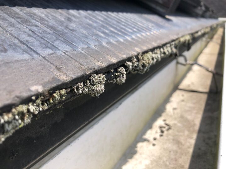 • 既存屋根材はスレート屋根です。石質の薄い板を使用しているため、劣化や反りがしやすい材料です。